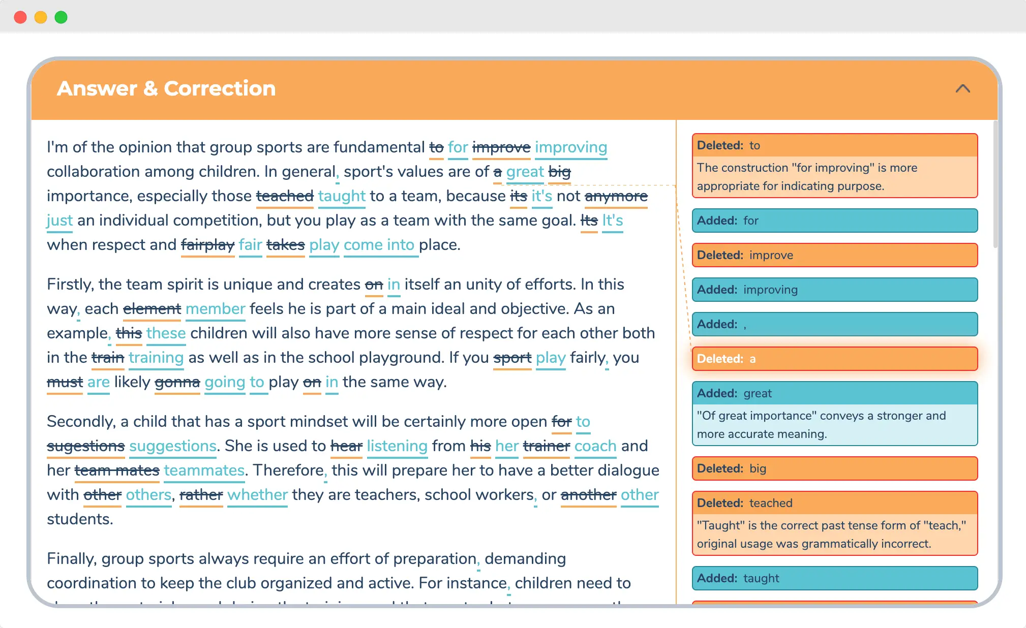 • Highlights grammar, vocabulary, and sentence structure mistakes
